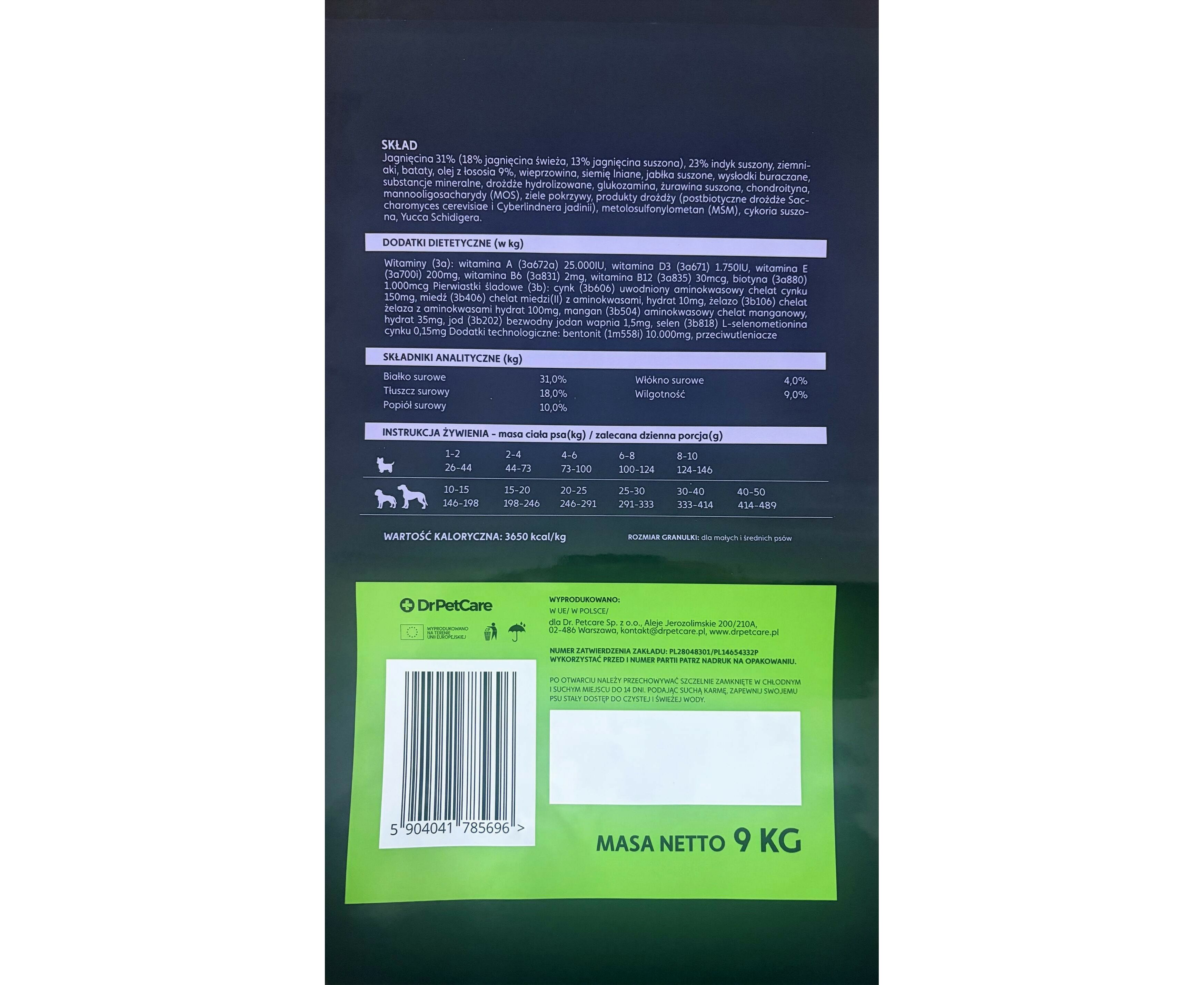 Wartość kaloryczna: 3650 kcal/kg