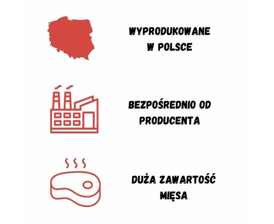 Przy produkcji nie używamy żadnych mączek mięsnych, kości, czy piór. Dbamy o to co jest w środku karmy, czyli tylko mięso mięśniowe i podroby idealne źródło białka i mikroskładników odżywczych.